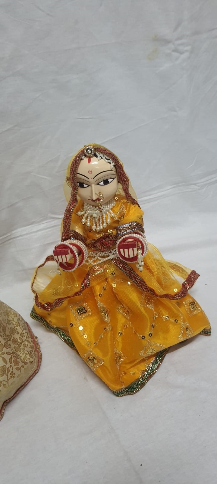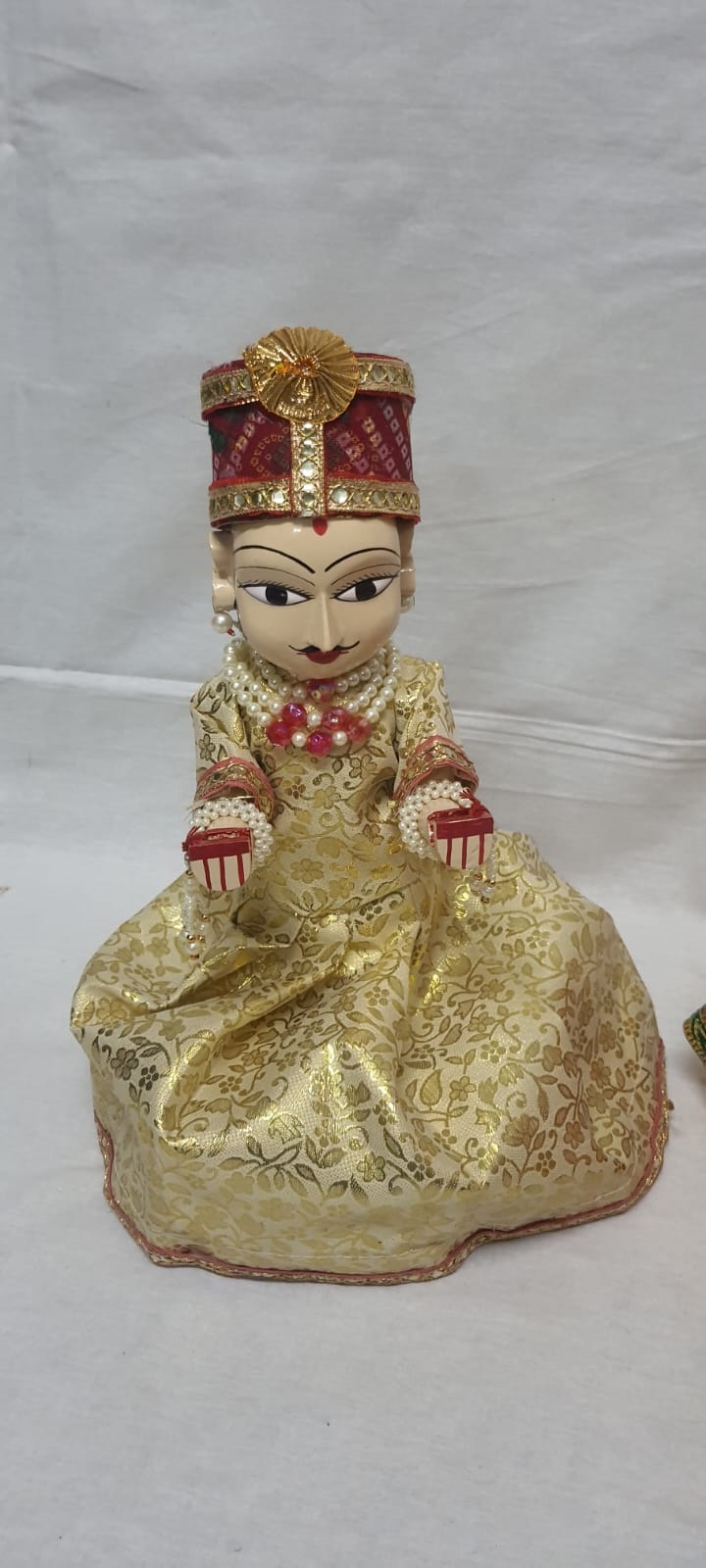 12 Inch Rajasthani Wooden Isar Gangaur Idol | Traditional Handcrafted Isar MATA Statue for Pooja, Home Temple, Festival Decoration, Cultural Gift | Wooden Ethnic God Showpiece(Yellow)