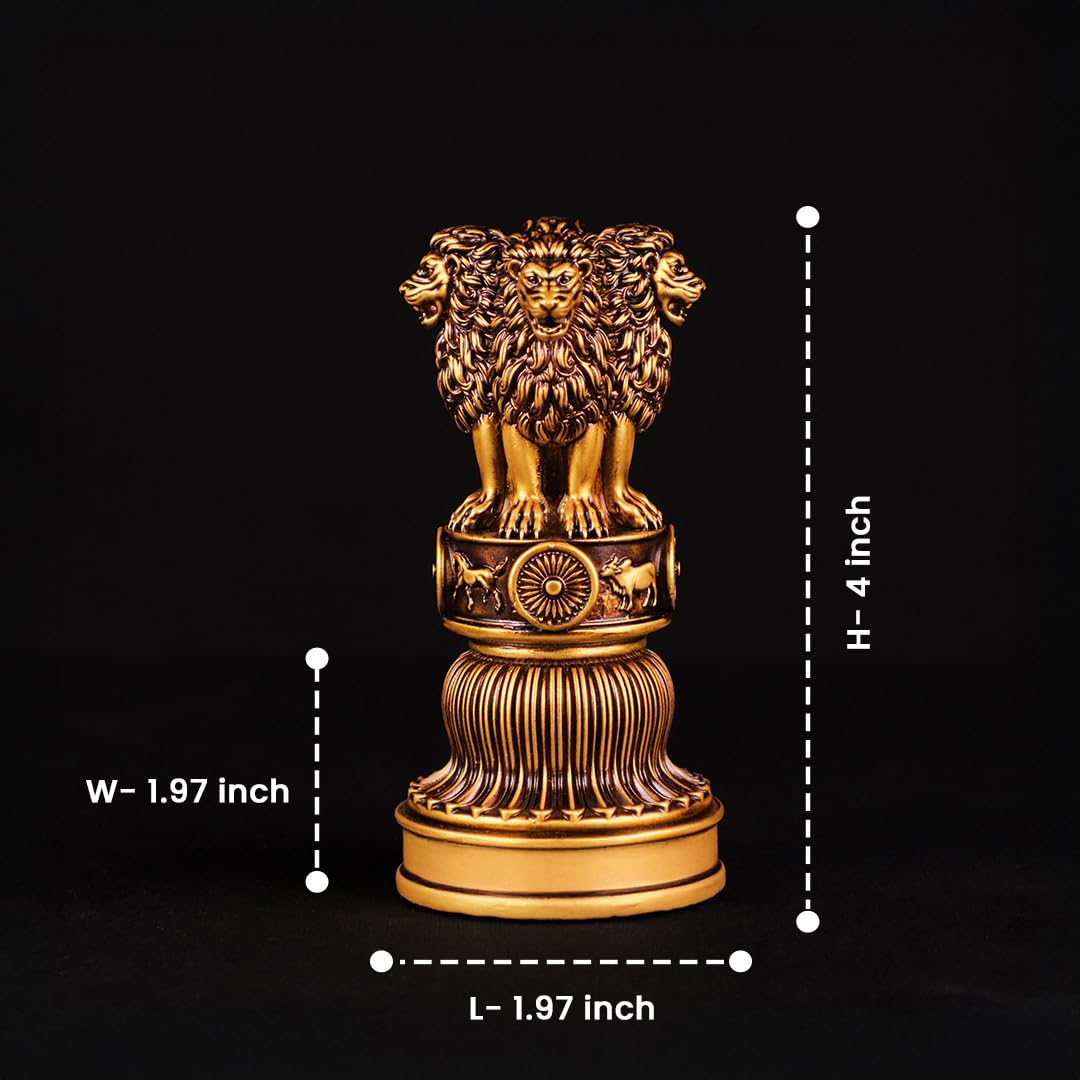 - 4. Handcrafted Artistry – This statue is a result of skilled craftsmanship, ensuring intricate detailing and a flawless finish. Every feature, from the lions to the Dharmachakra, is hand-finished with precision, reflecting Indian artistry at its best. The vintage look and premium polish make it a unique and eye-catching decor piece.