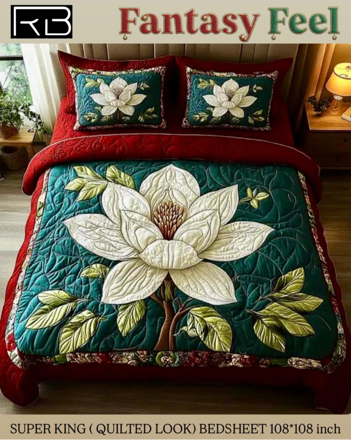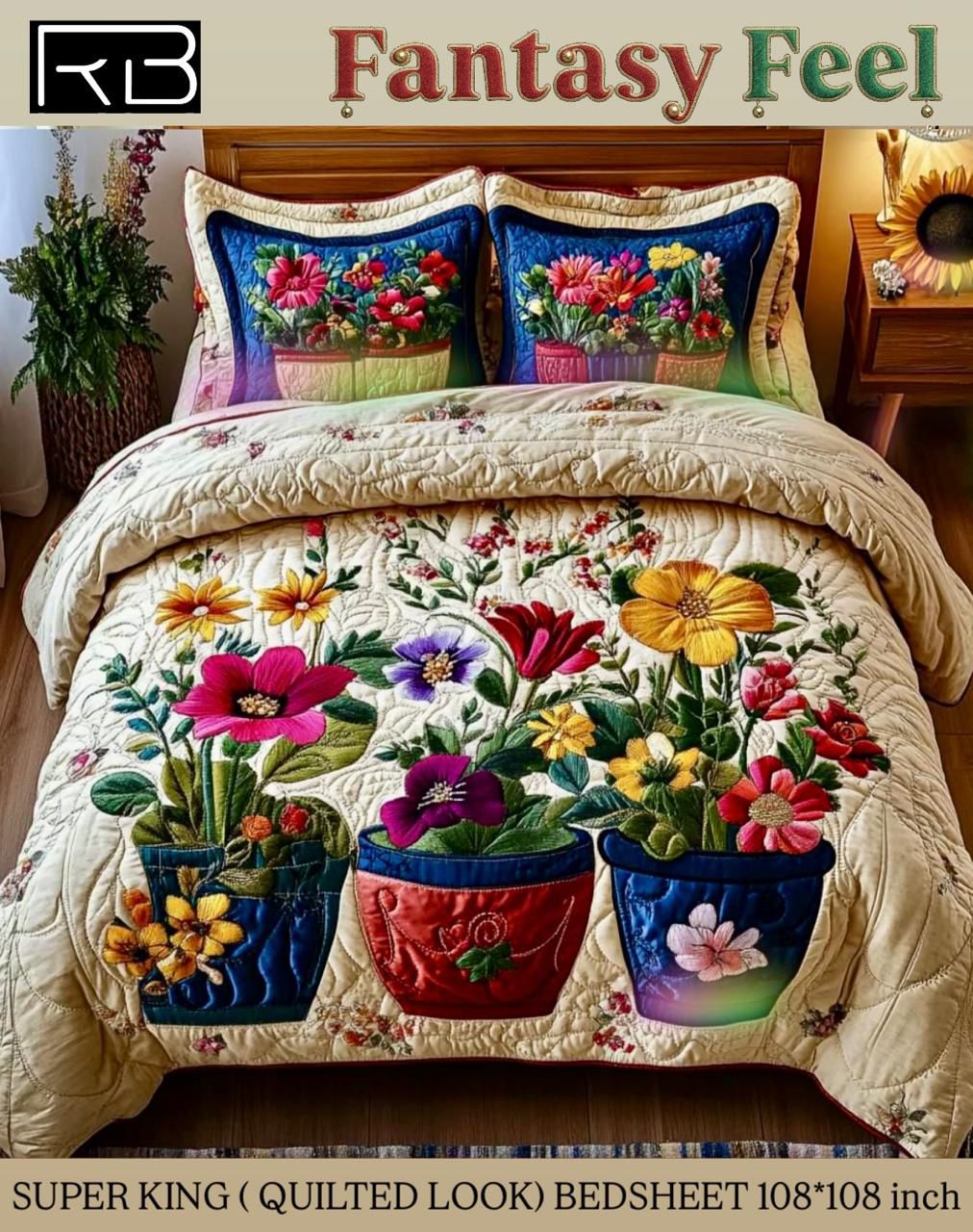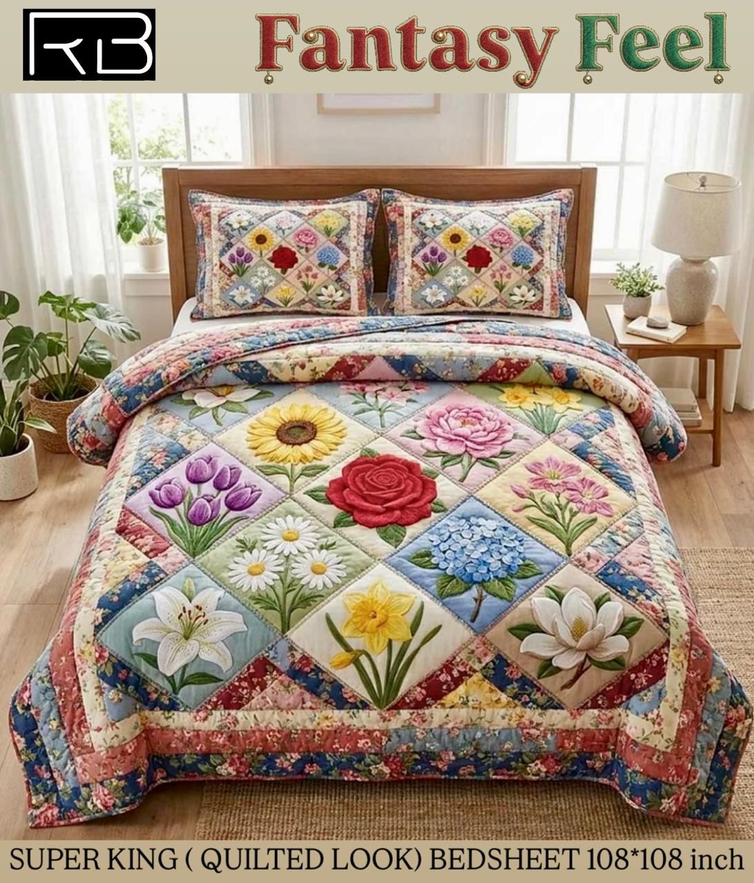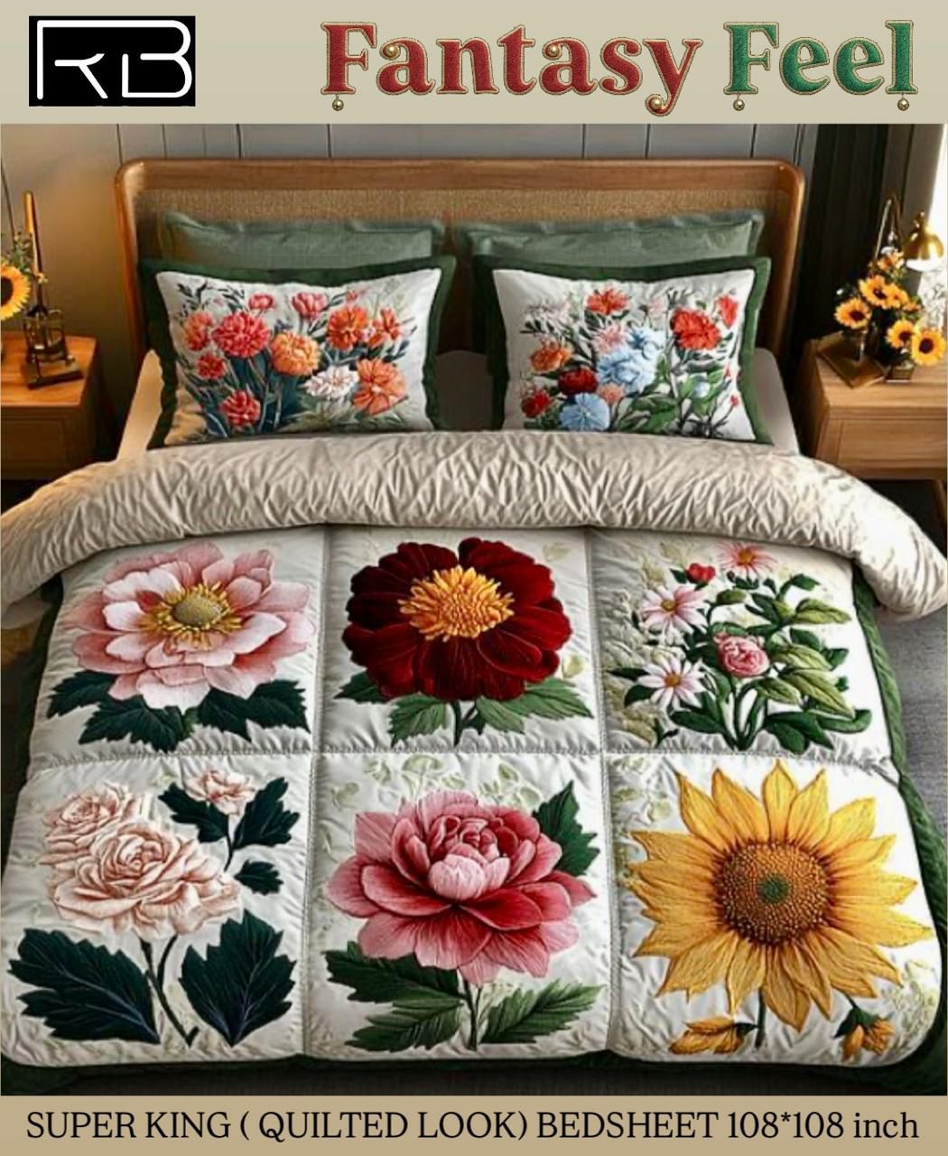 * SUPERKING SIZE 108*108 QUILTING EFFECTS DIGITAL PANEL PRINT PREMIUM BEDSHEET SET { 1+2 }