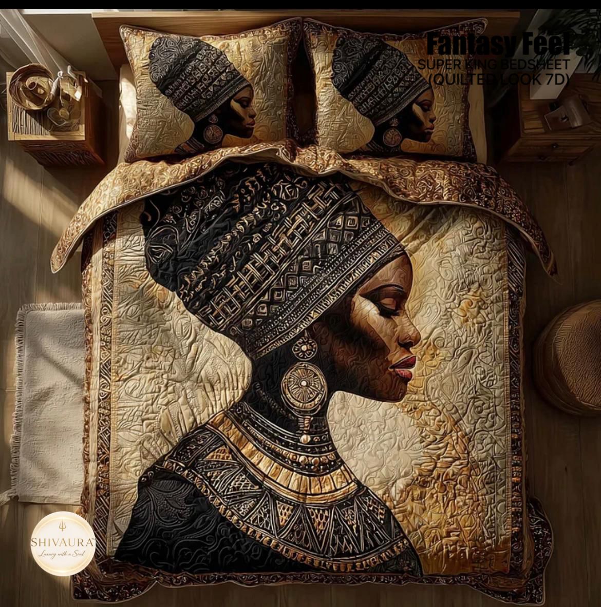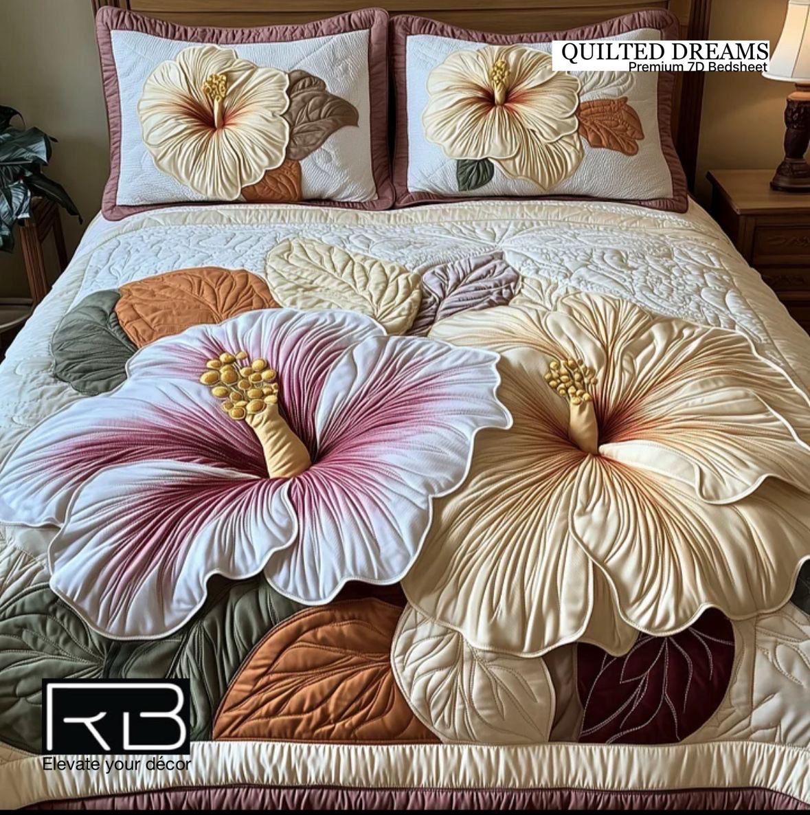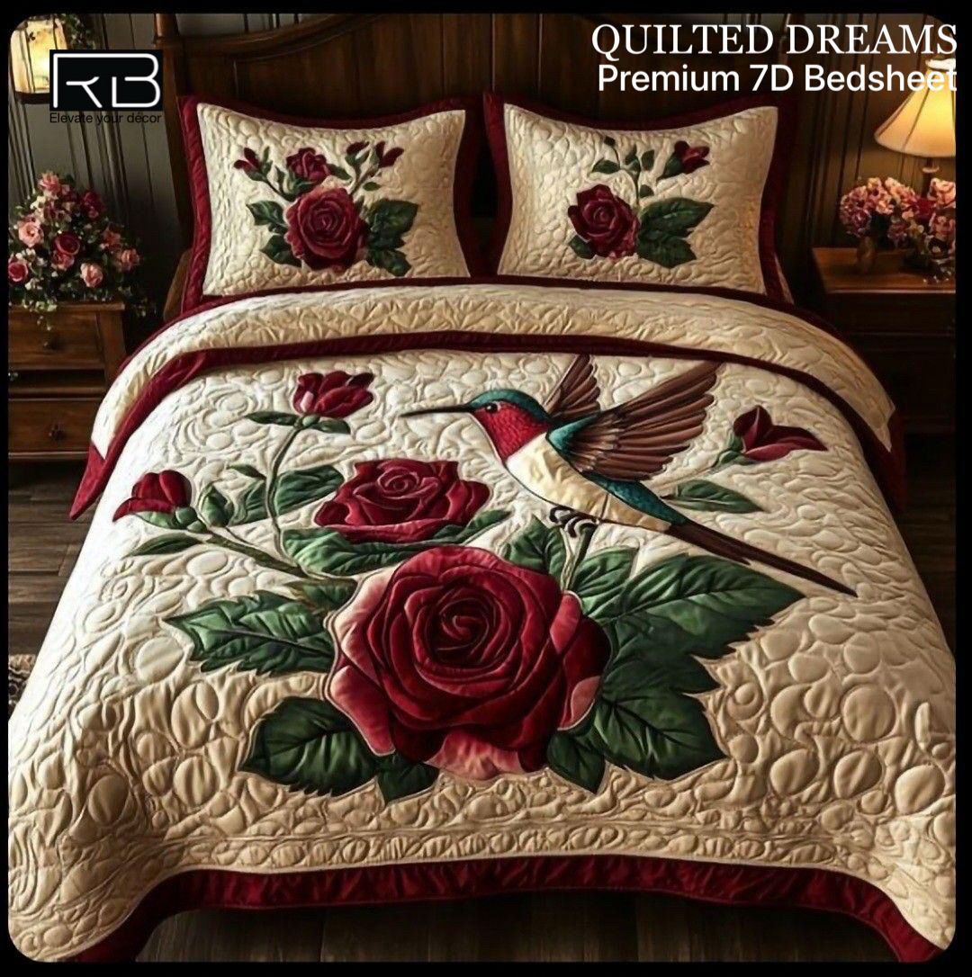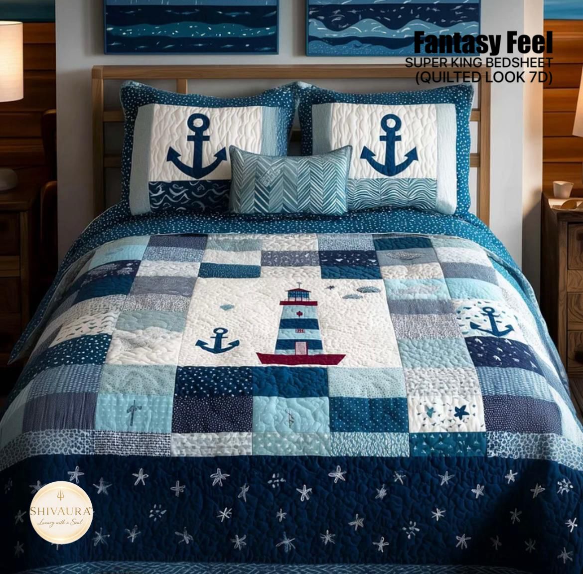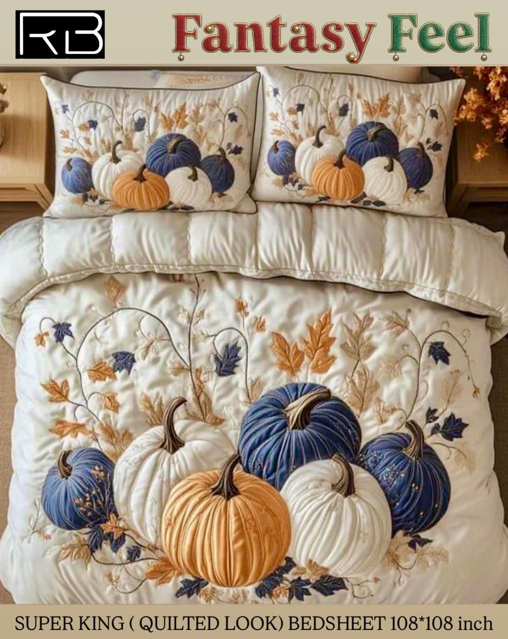 * SUPERKING SIZE 108*108 QUILTING EFFECTS DIGITAL PANEL PRINT PREMIUM BEDSHEET SET { 1+2 }