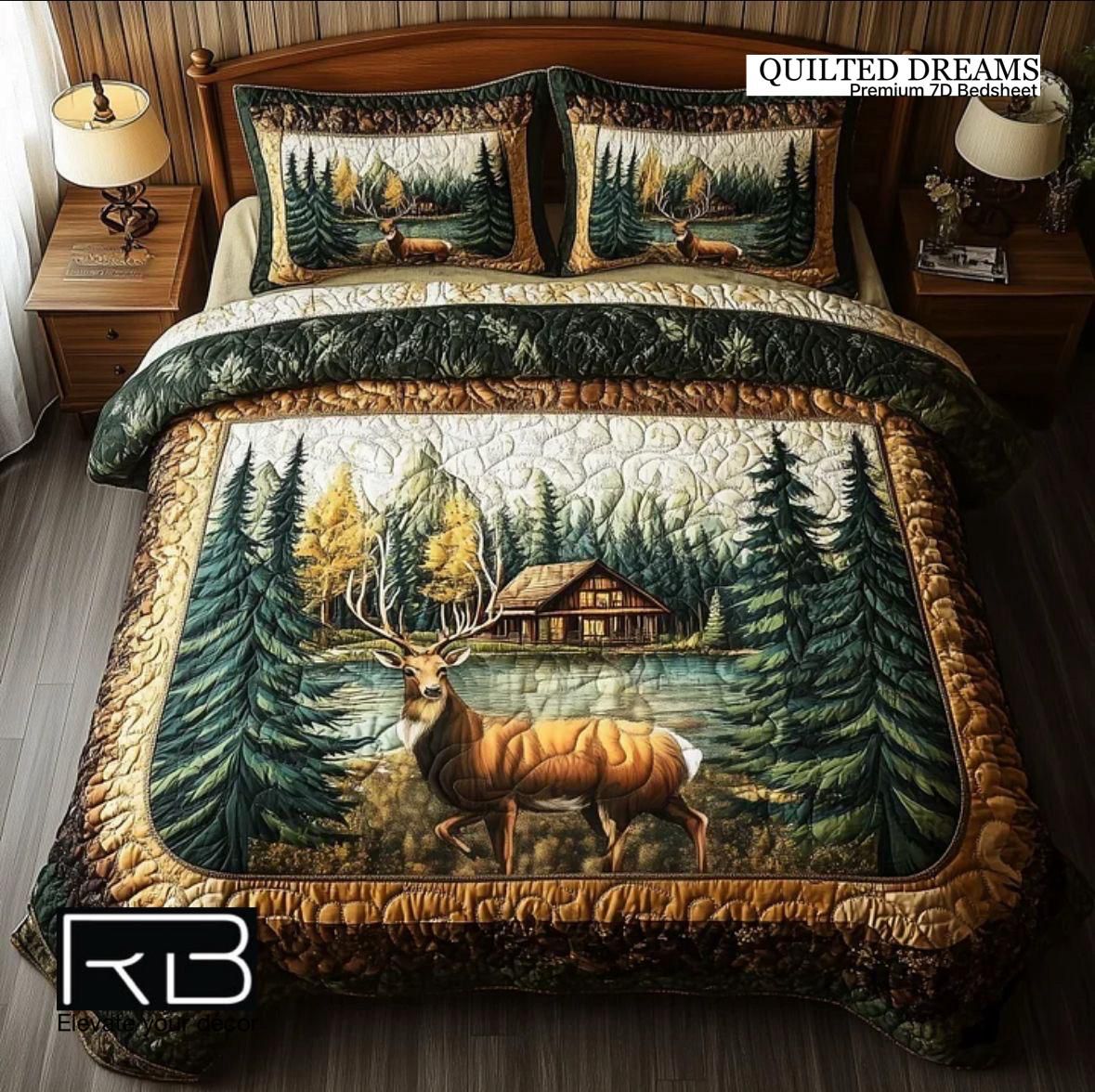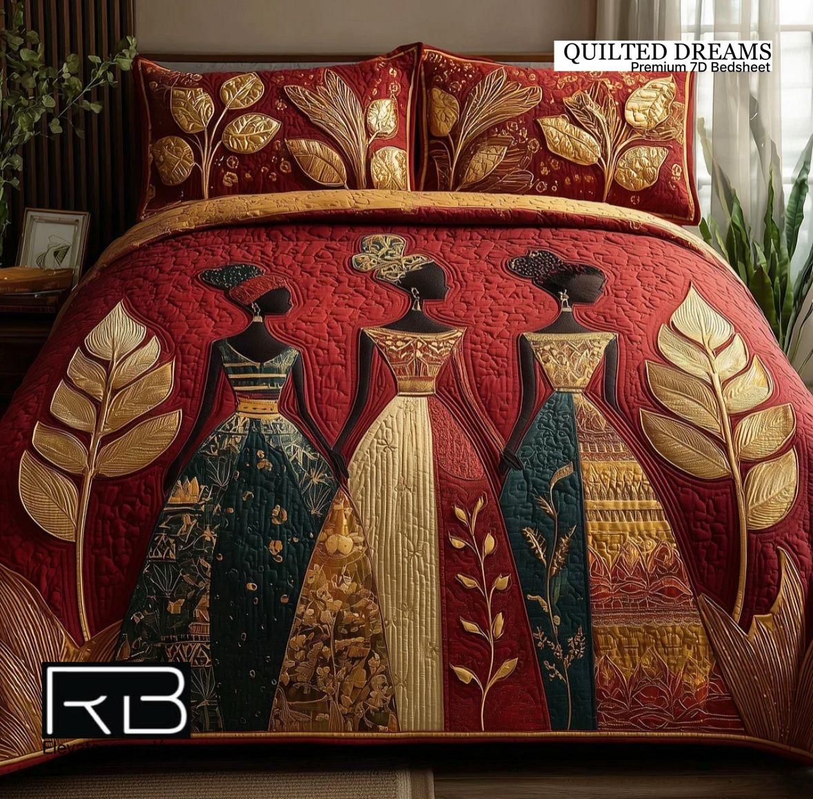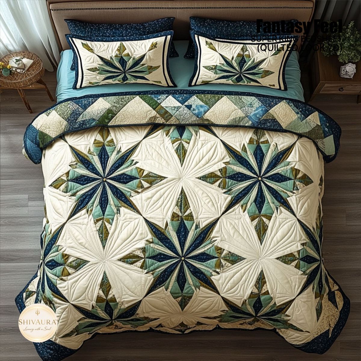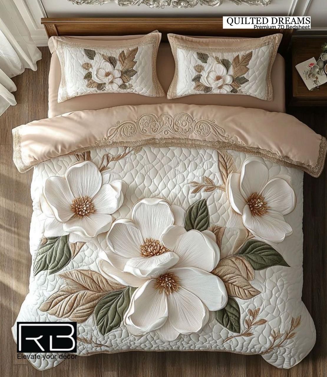 * SUPERKING SIZE 108*108 QUILTING EFFECTS DIGITAL PANEL PRINT PREMIUM BEDSHEET SET { 1+2 }
