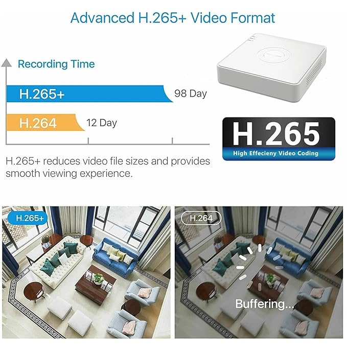 - Advanced H.265 Pro+ compression saves storage space Store more footage with high-quality video clarity.