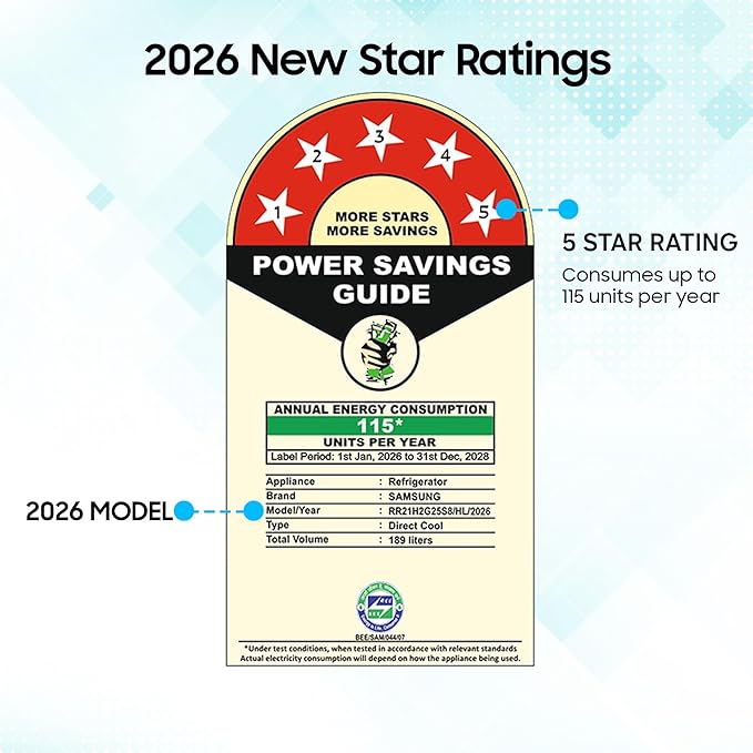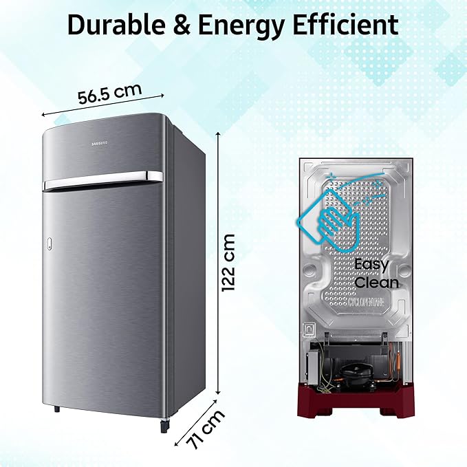 Samsung 189 L, 5 Star, Digital Inverter, Direct-Cool Single Door Refrigerator (RR21H2G25S8/HL, Silver, Elegant Inox, Single Touch Defrost, 2026 Model)